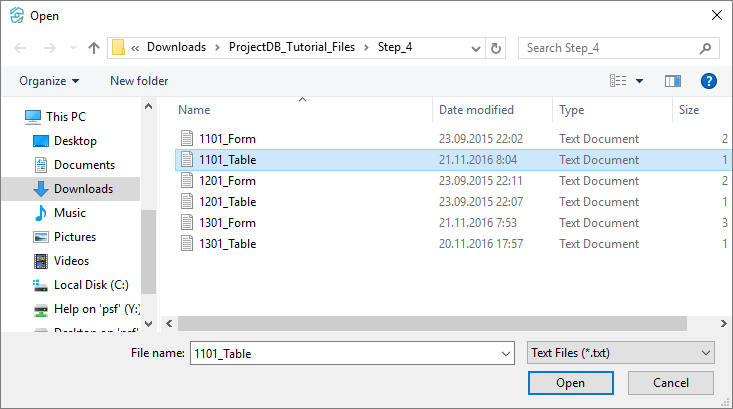 4.3.2.15. In the appeared window specify the path to the file 1101_Table;