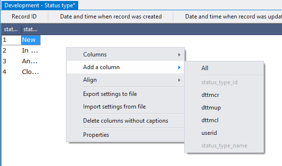4.3.2.4. Open the context menu by right-clicking in the empty space of the object, choose Add a column and select columns status_type_id, status_type_name;