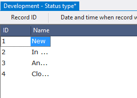 Let’s create several objects in a row. The next will be a table for storing status types.