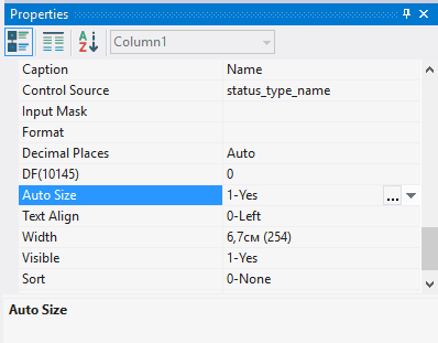 4.3.2.9. Select the last column and in the field Auto Size specify the value 1-Yes - column size will vary depending on the free space of the screen;