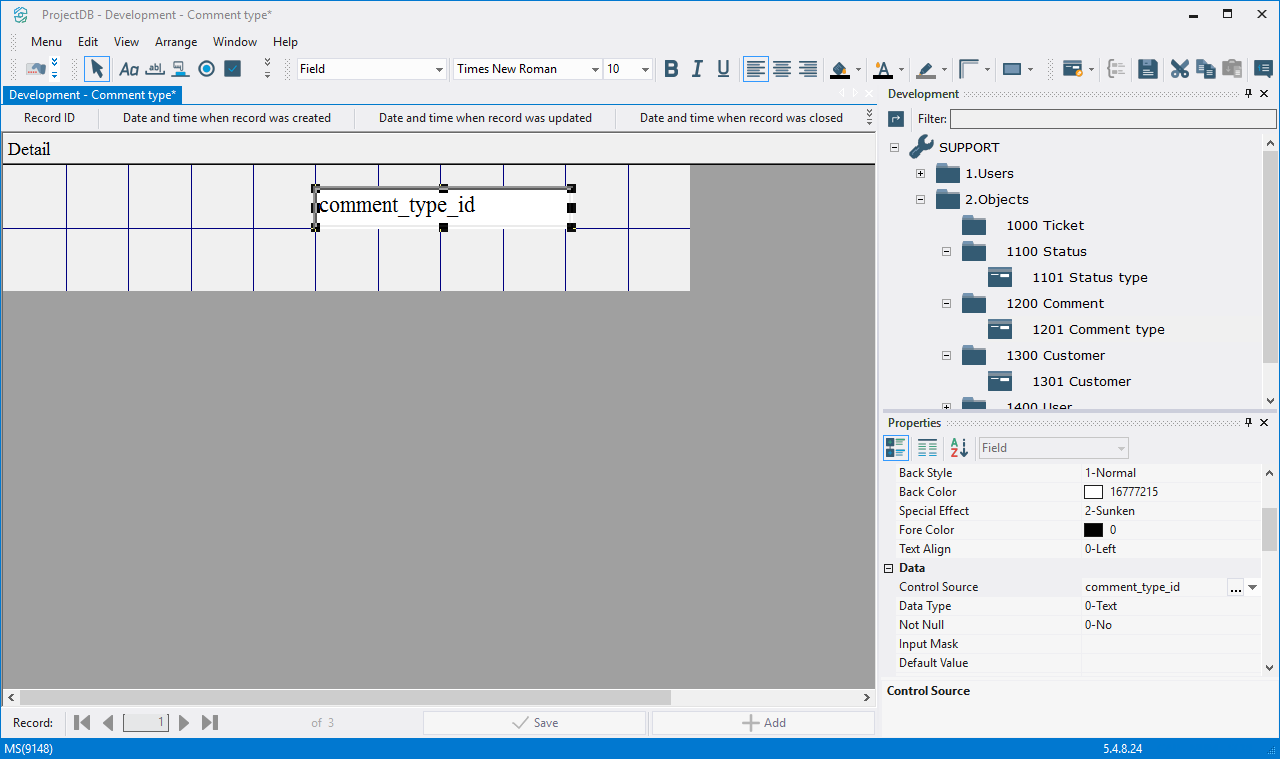 4.4.2.2. In the field Data Source specify the object - t_comment_types;