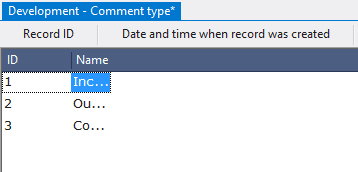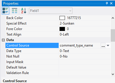 4.4.3.2. In the field Data Source choose database object - t_comment_types;