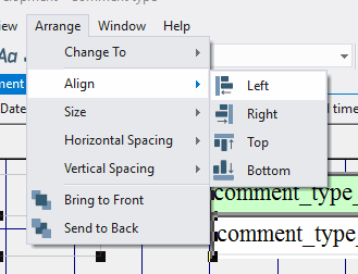 4.4.3.14. Press the left mouse button and, without releasing it, outline the size of label so that the label is left to the field comment_type_id;