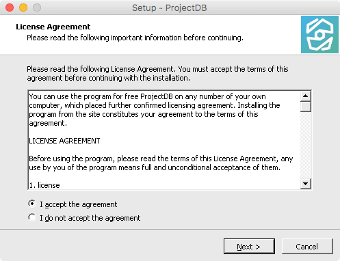 One can download ProjectDB on https://www.projectdb.ru in section Download. Downloading of the file ProjectDB_Setup.zip will start after one click on the link. After the archive is unpacked, one will get file ProjectDB_Setup.exe.