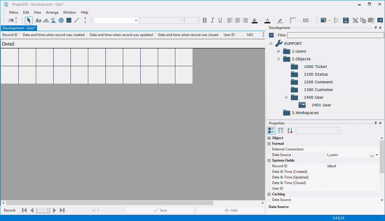 It's time to create the first object - a table for storing and displaying information about users that will use the system. For convenience we divide the task into simpler steps: