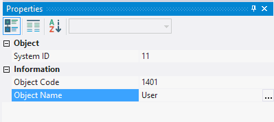 2.5.1.3. In the window Properties in the field Object Code type in 1401;