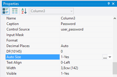 2.5.2.10. Select the last column and in the field Auto Size specify the value 1-Yes - column size will vary depending on the free space of the screen;