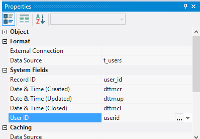 2.5.3.3. In system fields Record ID, Date & Time (Created), Date & Time (Updated), Date & Time (Closed), User ID choose fields from the table - user_id, dttmcr, dttmup, dttmcl, userid;