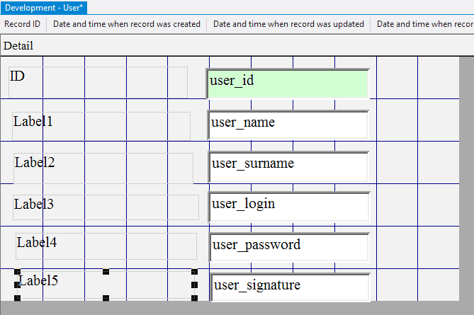 2.5.3.14. Press the left mouse button and, without releasing it, outline the size of label so that the label is left to the field user_id;