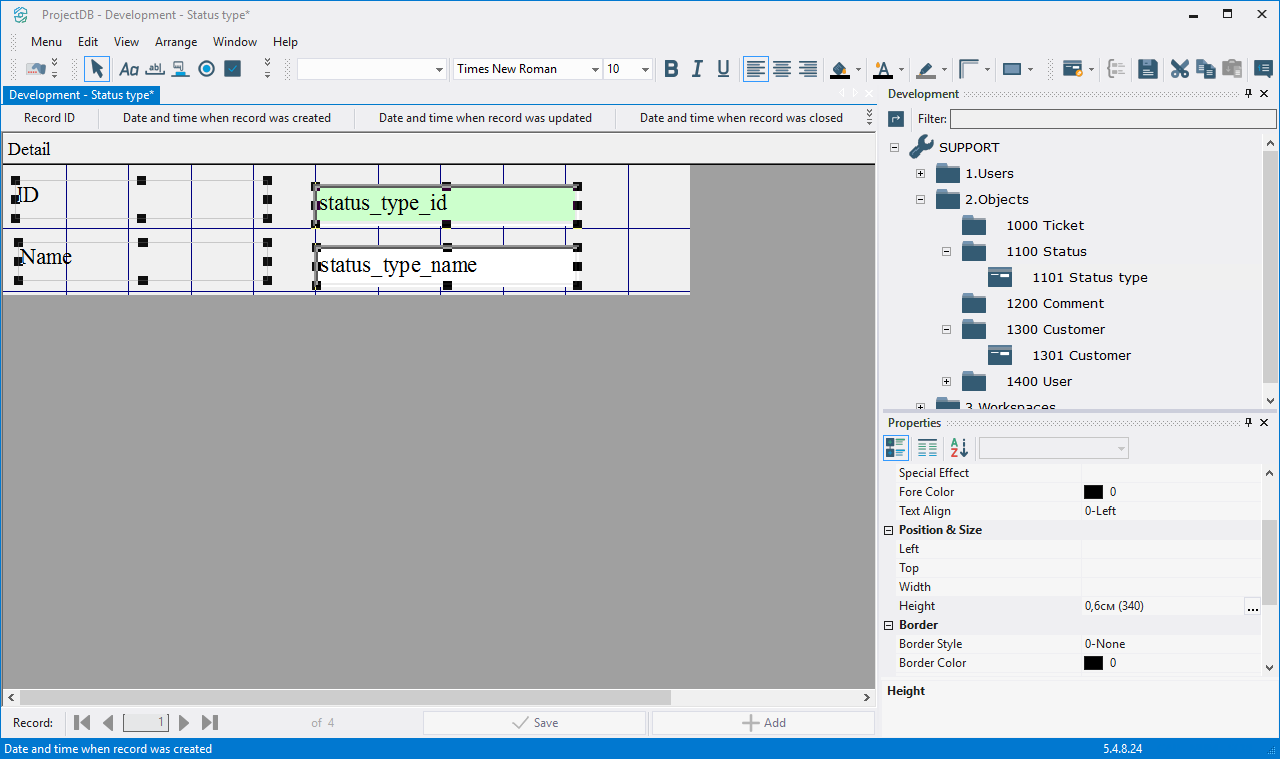 4.3.3.2. In the field Data Source choose database object - t_status_types;