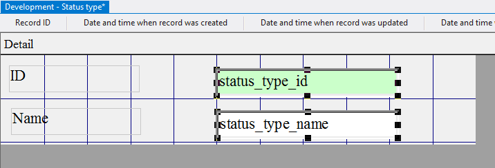 4.3.3.14. Press the left mouse button and, without releasing it, outline the size of label so that the label is left to the field status_type_id;