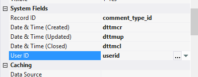4.4.2.3. In system fields Record ID, Date & Time (Created), Date & Time (Updated), Date & Time (Closed), User ID, select accordingly fields user_id, dttmcr, dttmup, dttmcl, userid;