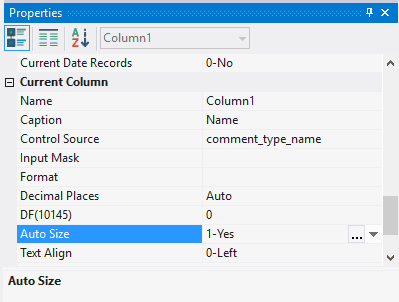 4.4.2.9. Select the last column and in the field Auto Size specify the value 1-Yes - column size will vary depending on the free space of the screen;