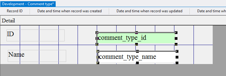 4.4.3.14. Press the left mouse button and, without releasing it, outline the size of label so that the label is left to the field comment_type_id;