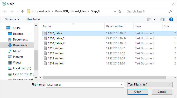8.8.1.15. In the appeared window specify the path to the file 1202_Table;