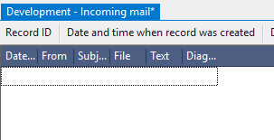 9.2.2.5. Select each column by clicking the left mouse button on any line of the table, specify in the field Caption the displayed name of the column - Date and Time, From, Subject, File, Text, Diagnostic message accordingly;