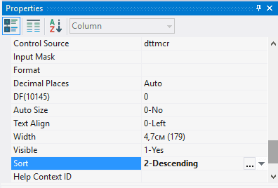 9.2.2.10. выделить колонку dttmcr и установить в поле Сортировка значение 2-по убыванию;