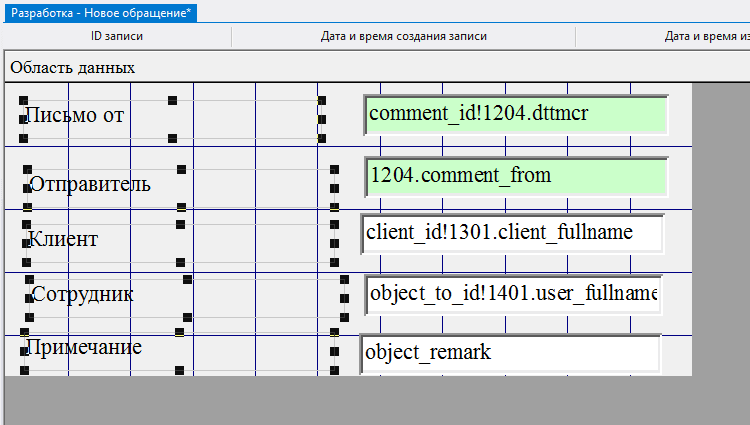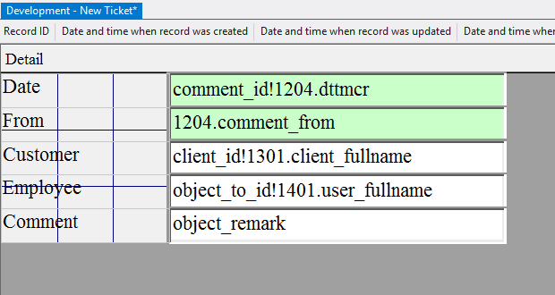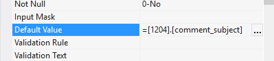 9.5.1.30. In the window that opens, enter the value =[1204].[comment_subject];