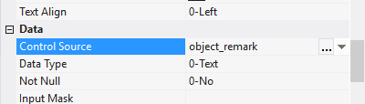 9.5.1.49. Select the field object_remark - this field will occupy the remaining free space when working in the form and store multi-line text, so you should allow the text to scroll vertically by setting the Scroll Bars field to 2-Vertical;