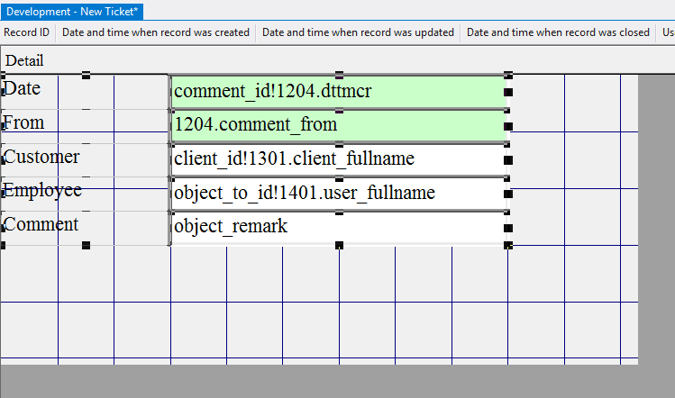 9.5.1.37. In the Caption field of each of the labels enter From, Customer, Employee and Comment, respectively;