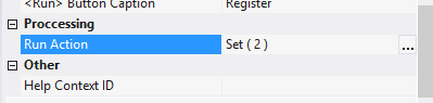 9.5.1.55. In the <Run> Button Caption, enter Register;