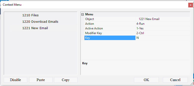 10.5.1.9. In the Key field enter the letter N on the English keyboard layout;