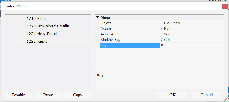 10.5.1.2. n the Context Menu field, click the Advanced button;