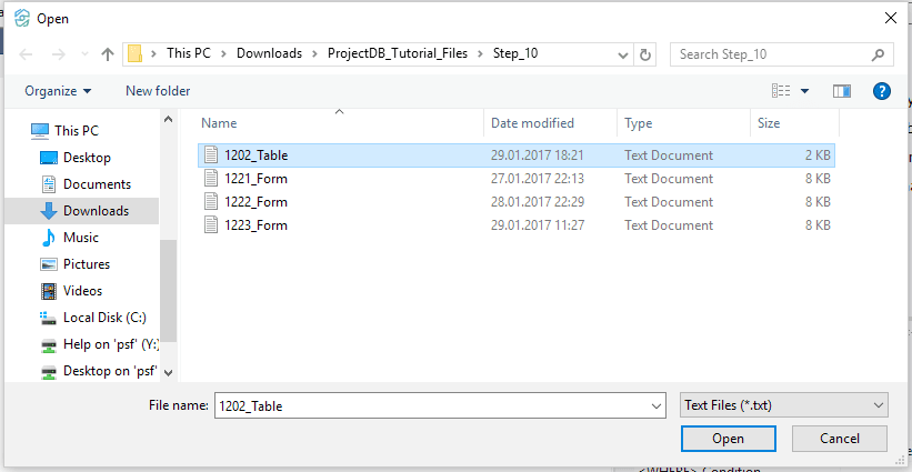 10.5.1.29. In the appeared window specify the path to the file 1202_Table;