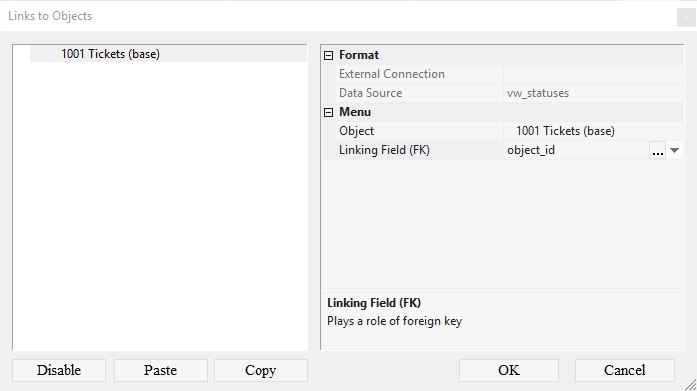 6.2.2.5. In the Linking Field (FK) field choose the field in the table 1102 that plays the role of the foreign key - object_id