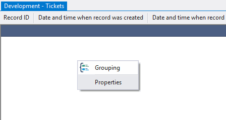 6.2.1.3. In the Properties window, enter 1002 in the Object Code field, enter the Tickets  in the Object Name field.