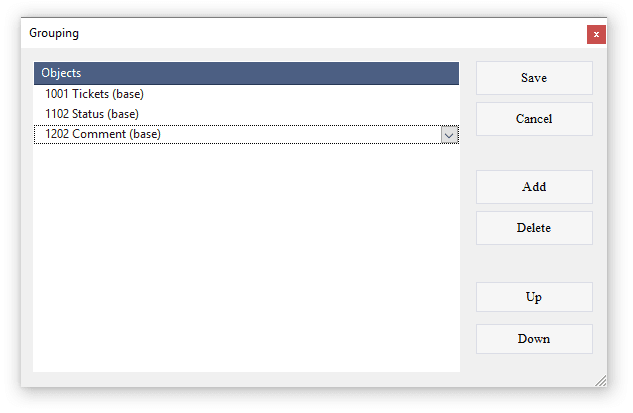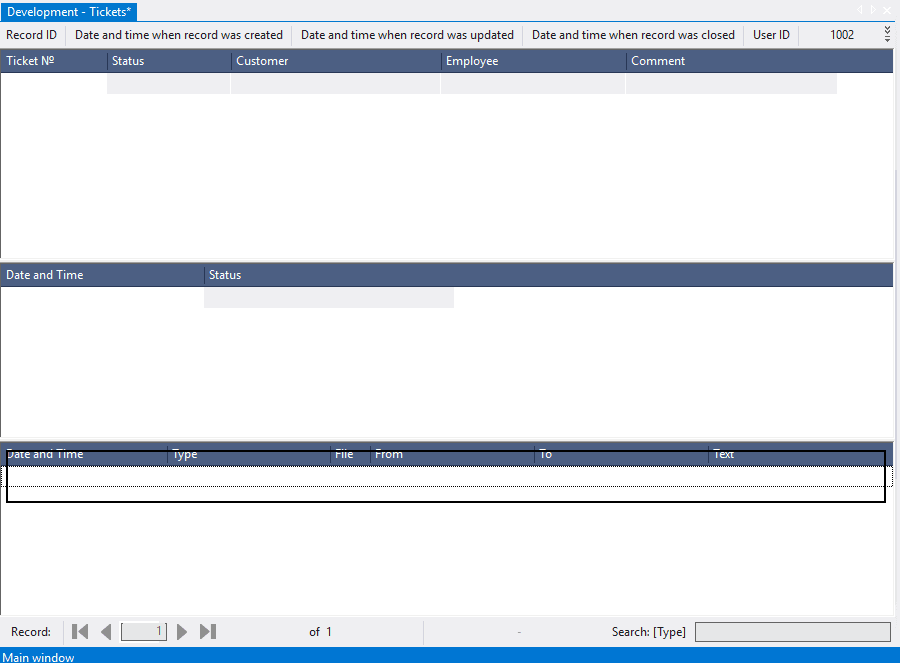 The main object to work with tickets is 1002 Tickets, that consists of the tables 1001 Tickets (base)1102 Status (base)1202 Comment (base). Object 1002 Tickets allows you to view not only information about tickets, but also to track the history of changes in statuses and comments.
