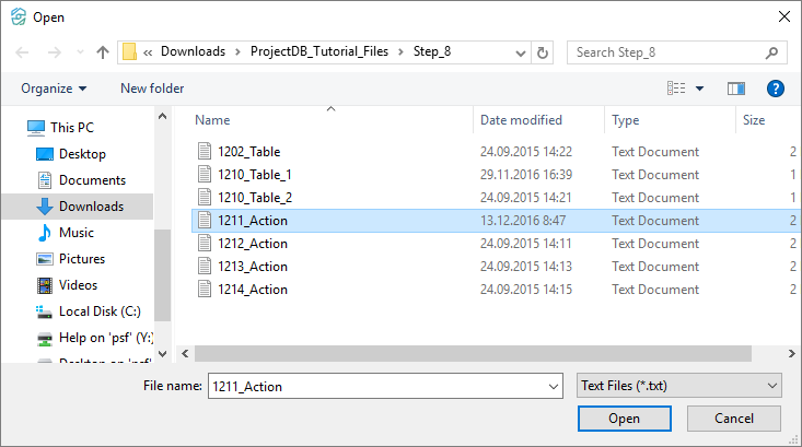 8.3.1.21. In the appeared window specify the path to the file 1211_Action;