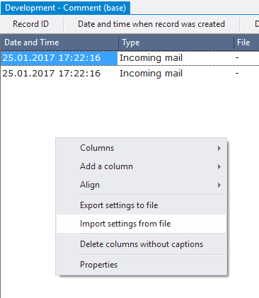 All the settings for the context menu will be imported.