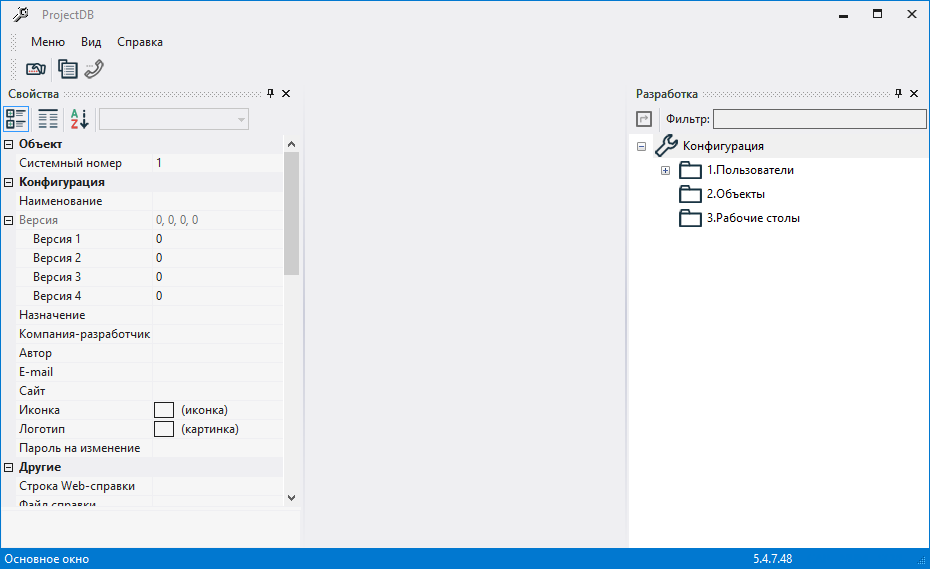В базе данных будет создана таблица projectdb, которая будет хранить конфигурацию, а в программе отобразится интерфейс разработки конфигурации.