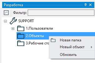 2.4.4.1. вызвать контекстное меню нажатием правой кнопки мыши по папке 2.Объекты;