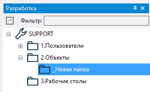 Созданная папка 1000 Обращения отобразится в папке 2.Объекты.