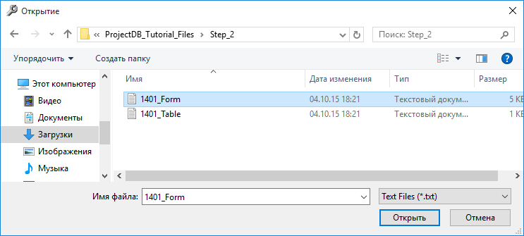 2.5.2.16. в появившемся окне указать путь к файлу 1401_Table;