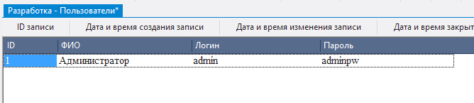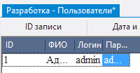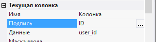 2.5.2.6. выбрать каждую из колонок нажатием левой кнопки мыши по любой строчке таблицы, указать в поле Подпись отображаемое имя колонки - ID, ФИО, Логин, Пароль соответственно;