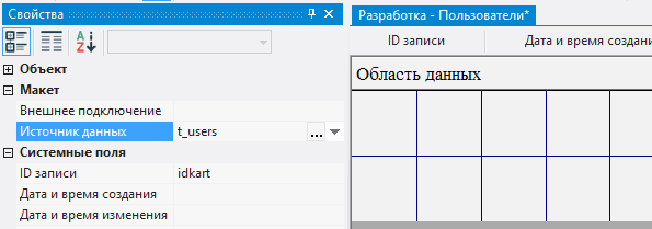 2.5.3.2. в поле Источник данных выбрать объект базы данных - t_users;
