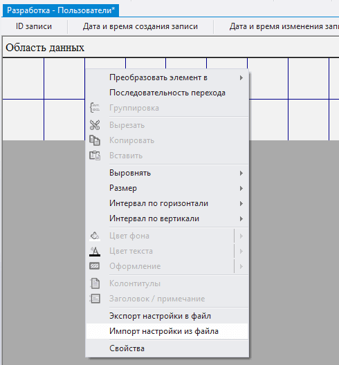 2.5.2.14. вызвать контекстное меню нажатием правой кнопки мыши в области данных;