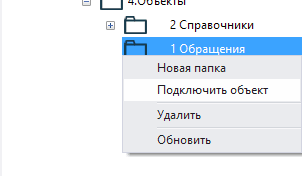 6.5.1.6. вызвать контекстное меню папки 1 Обращения;