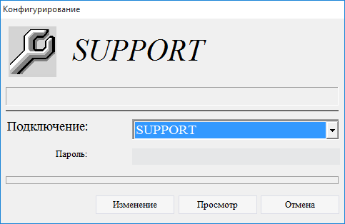 7.2.1.3. в окне Конфигурирование в поле Подключение выбрать подключение SUPPORT;