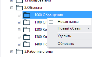 7.2.1.7. вызвать контекстное меню папки 1000 Обращения нажатием правой кнопки мыши;