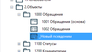 Объект 1002 Обращения отображает актуальные обращения. Логично создать отдельный объект для отображения закрытых обращений. При этом разница между объектами заключается в текущем статусе обращения. Удобно воспользоваться отдельным типом объекта - псевдоним, который позволяет создать новый объект, взяв за основу уже имеющийся.