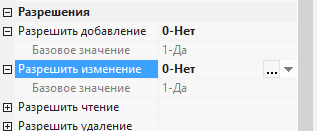 7.2.4.2. в полях Разрешить добавление, Разрешить изменение установить значение 0-нет;