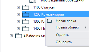 7.3.1.1. вызвать контекстное меню папки 1200 Комментарии нажатием правой кнопки мыши;