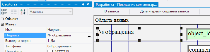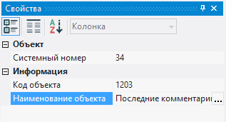 7.3.1.3. в окне Свойства в поле Код объекта ввести 1203, в поле Наименование объекта ввести Последние комментарии.