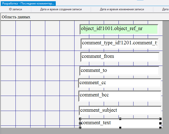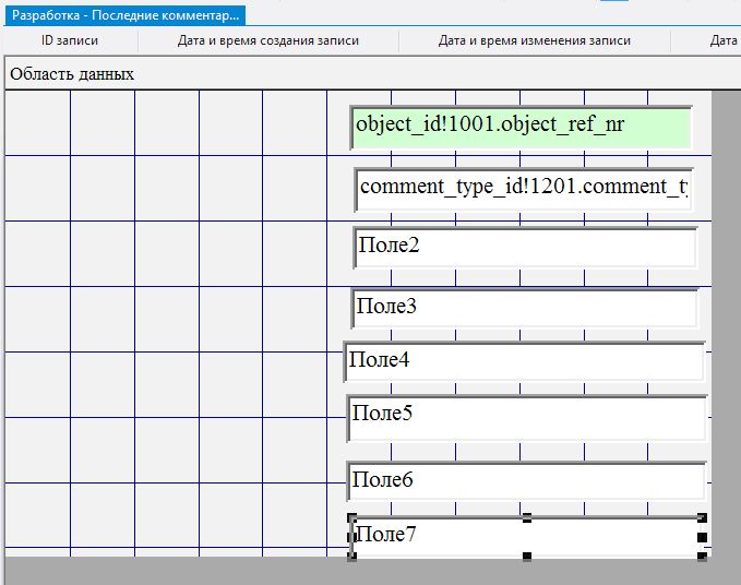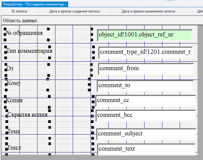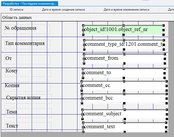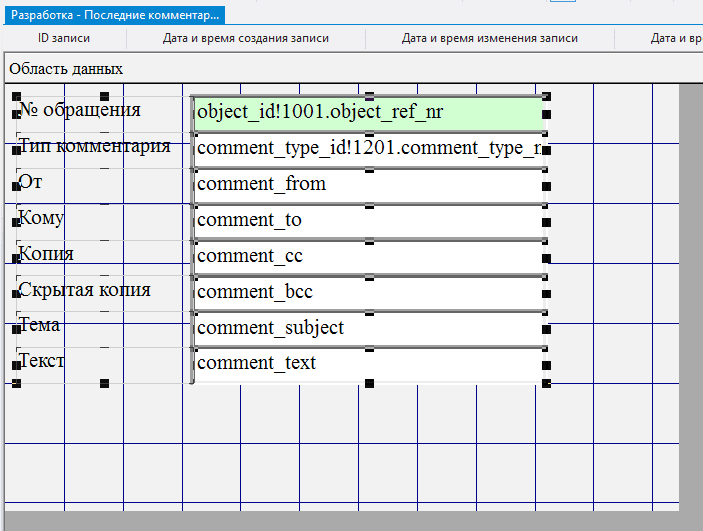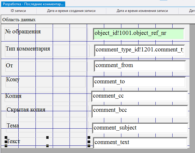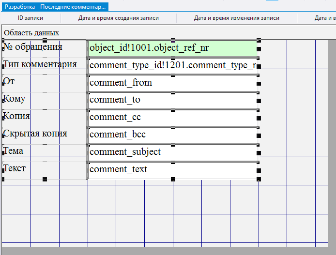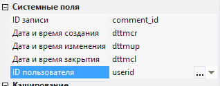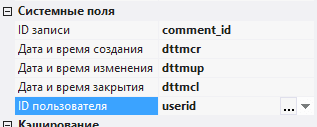 7.3.3.3. в системных полях ID записи, Дата и время создания, Дата и время обновления, Дата и время закрытия, ID пользователя выбрать поля из таблицы - comment_id, dttmcr, dttmup, dttmcl, userid;