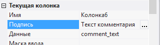 7.3.2.5. выбрать каждую из колонок нажатием левой кнопки мыши по любой строчке таблицы, ввести в поле Подпись отображаемое имя колонки - Дата и время, № обращения, Статус, Тип комментария, Вложение, От, Текст комментария соответственно;