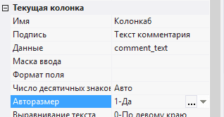 7.3.2.9. выделить последнюю колонку и установить в поле Авторазмер значение 1-Да - размер колонки будет изменяться в зависимости от свободного пространства экрана;